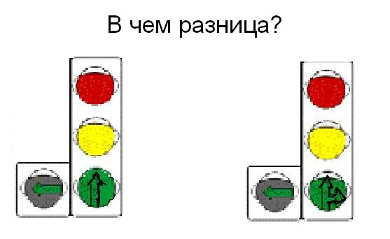 а контурная - она указывает разрешенные направления а сам зеленый разрешает движение в принципе, но абсолютно ничего не запрещает.