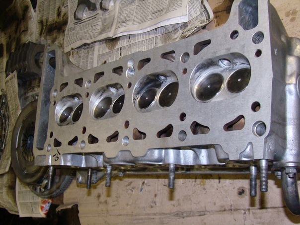 Просажены клапана,облегченные Т-обр. клапана,бронзовые направляйки на выпуске,дюралевые тарелочки,немного фрезерована-примерно 1мм